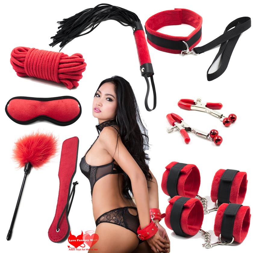 Bondage BDSM Kit with Whip, Rope & Handcuffs for Sex Spanking